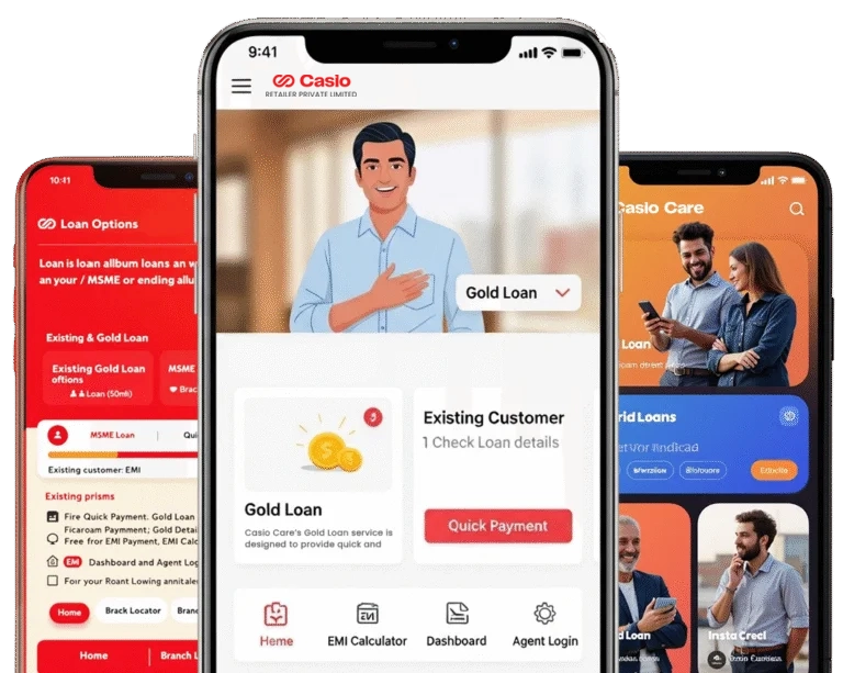 Casio Care’s Gold Loan service is designed to provide quick and reliable access to funds by unlocking the value of your gold assets. Whether you need money for personal expenses, business growth, education, or medical emergencies, our gold loans offer an ideal solution with minimal documentation, instant processing, and highly competitive interest rates. We ensure complete transparency throughout the process and guarantee the safety and security of your gold. With nearly three decades of experience in the financial sector, Casio Care brings trust, stability, and customer-centric service to every transaction. Experience financial freedom with our easy and dependable gold loan offering.